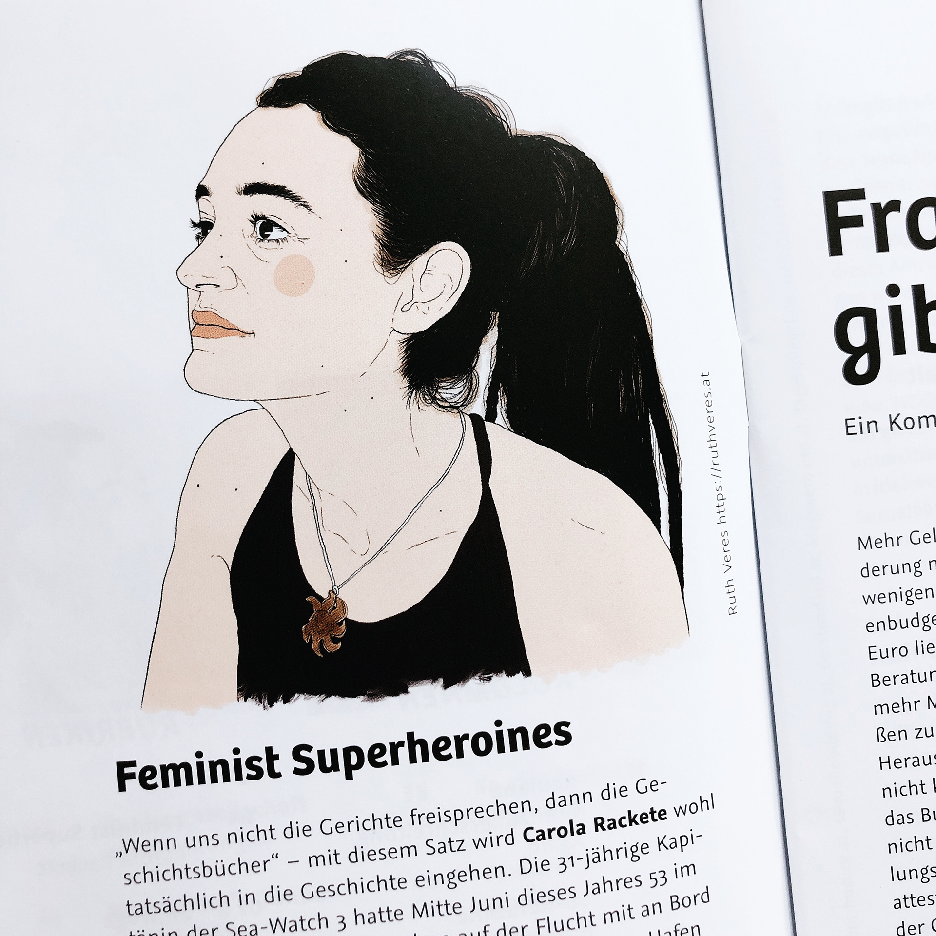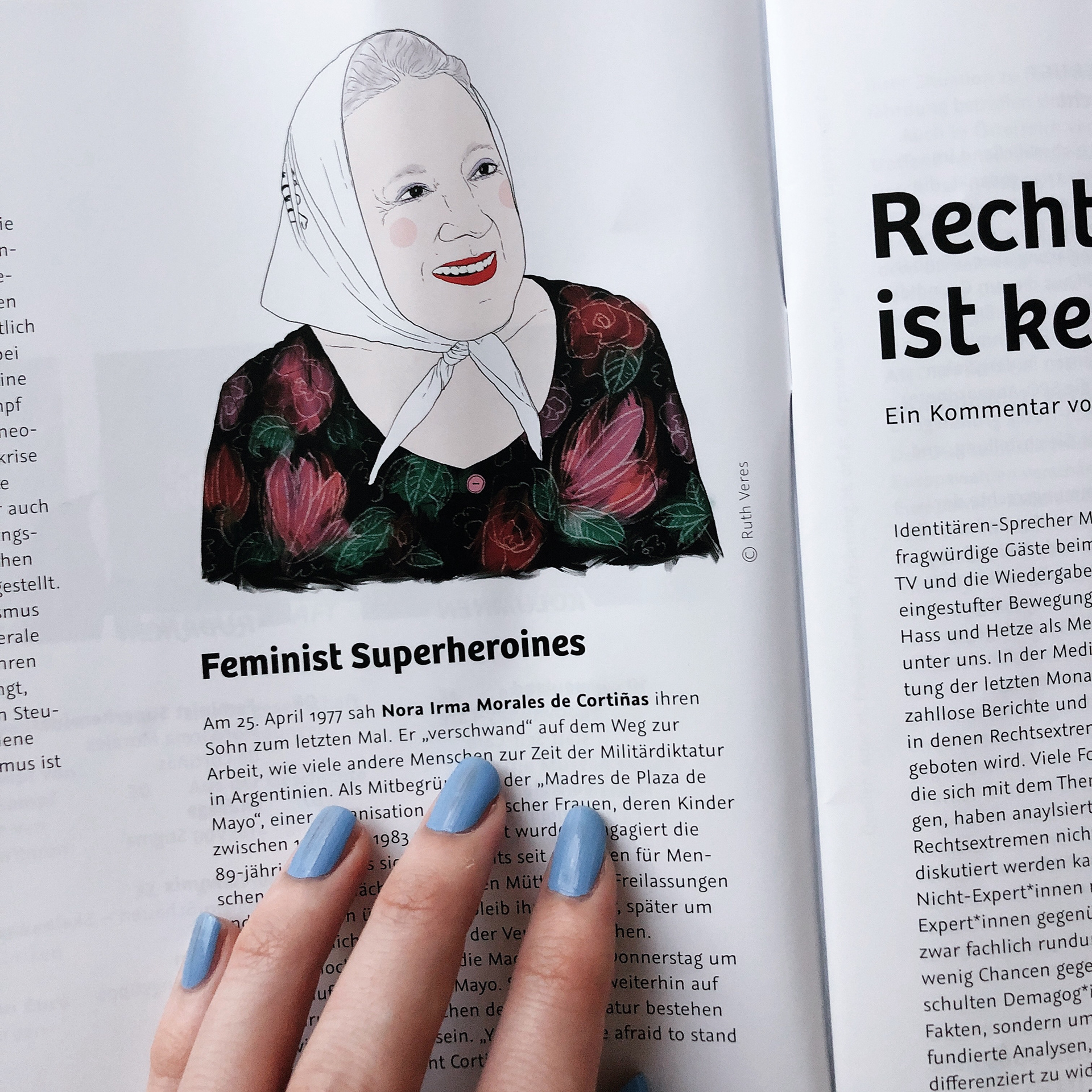 Illustrationen für die Rubrik "Feminist Superheroines" des an.schläge Magazins