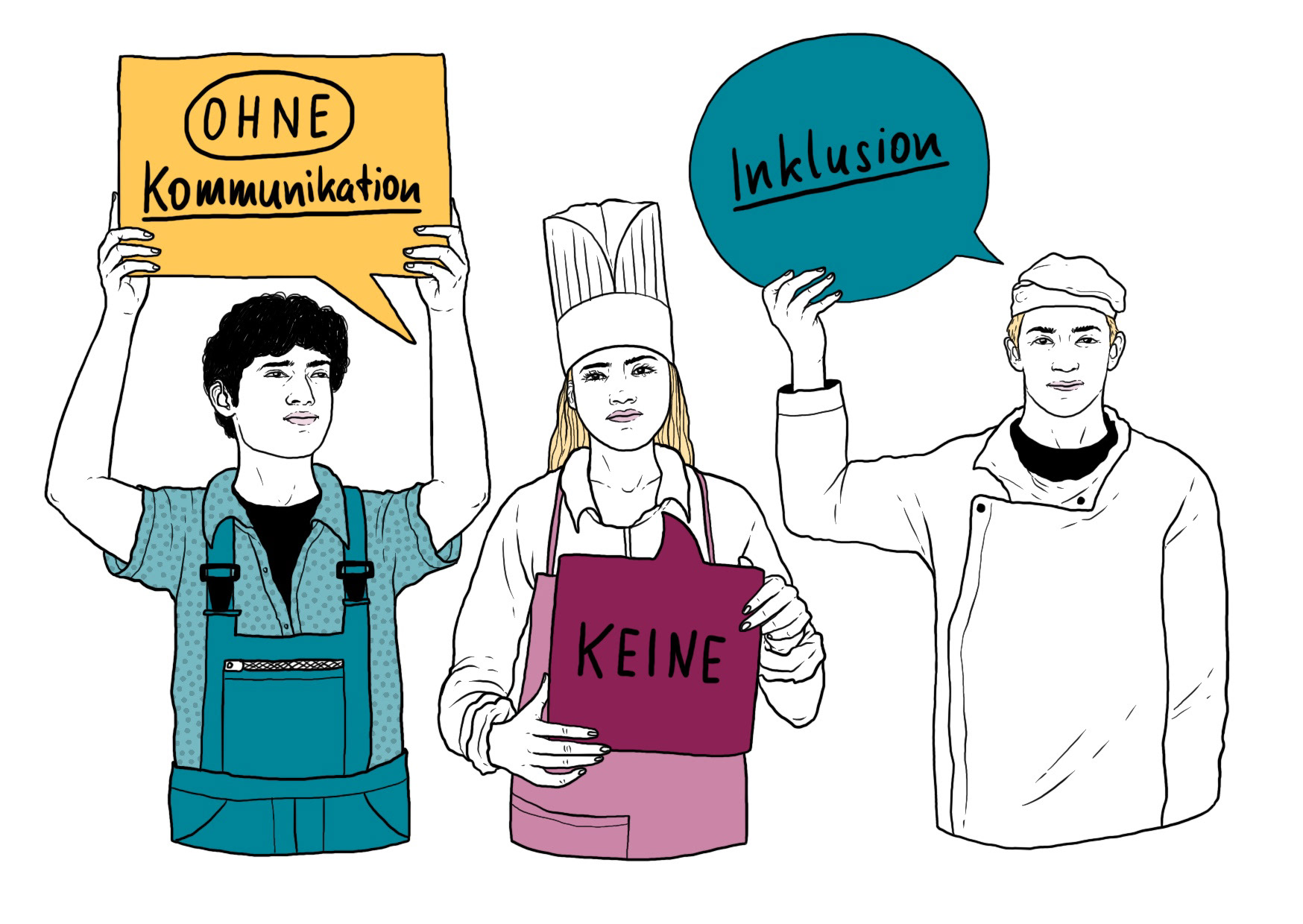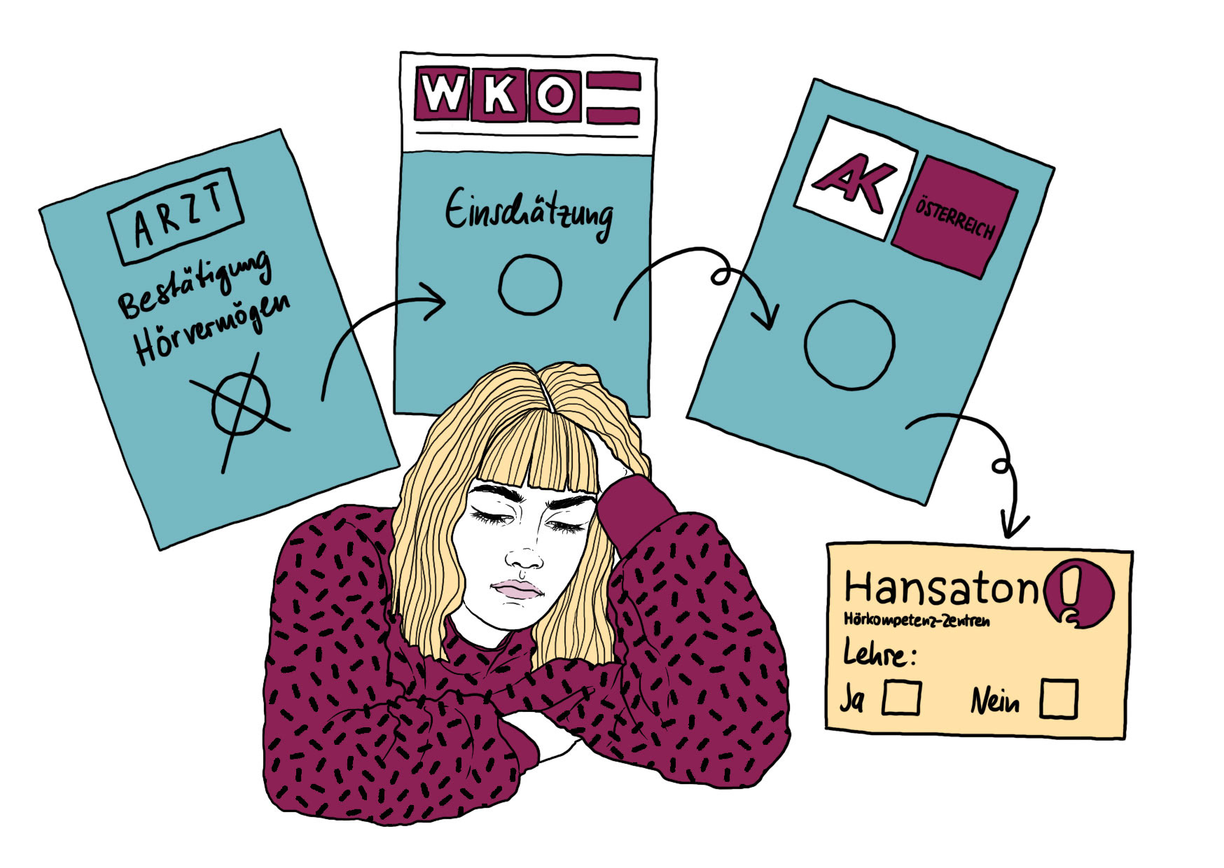 Illustrationen mehrerer Fallbeispiele für den Österreichischen Gehörlosenbund (ÖGLB) – Anti-Diskriminierungsbericht 2022-2025