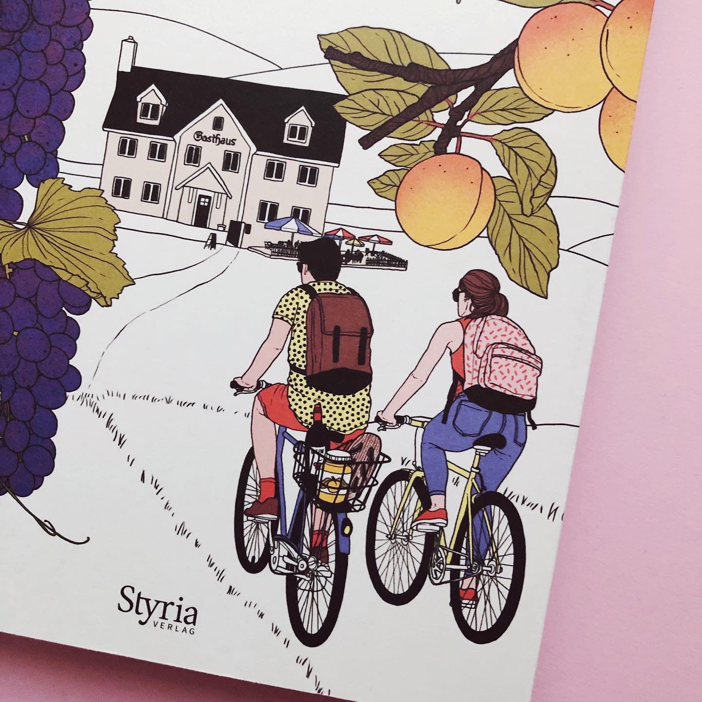 "Genussradln rund um Wien – Kulinarische Genüsse mit dem Fahrrad erkunden", Florian Holzer, erschienen im Styria Verlag. Fotografie: Rupert Pessl; Buch- und Covergestaltung: Jefferson & Högerle; Coverillustration: Ruth Veres; Kartografie: Angelika Solibieda; Lektorat: Philipp Rissel; Projektleitung: Sophie Wolf; Korrektorat: Martina Paul; Herstellungsleitung: Maria Schuster; Druck und Bindung: Gerin