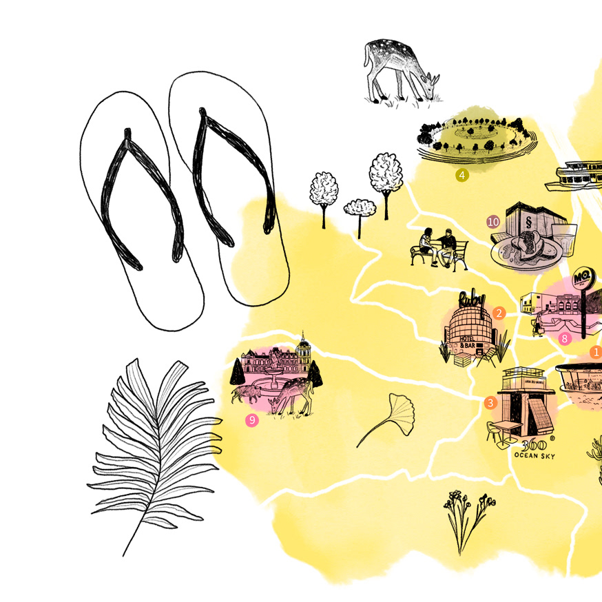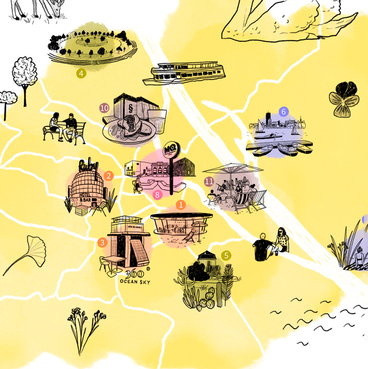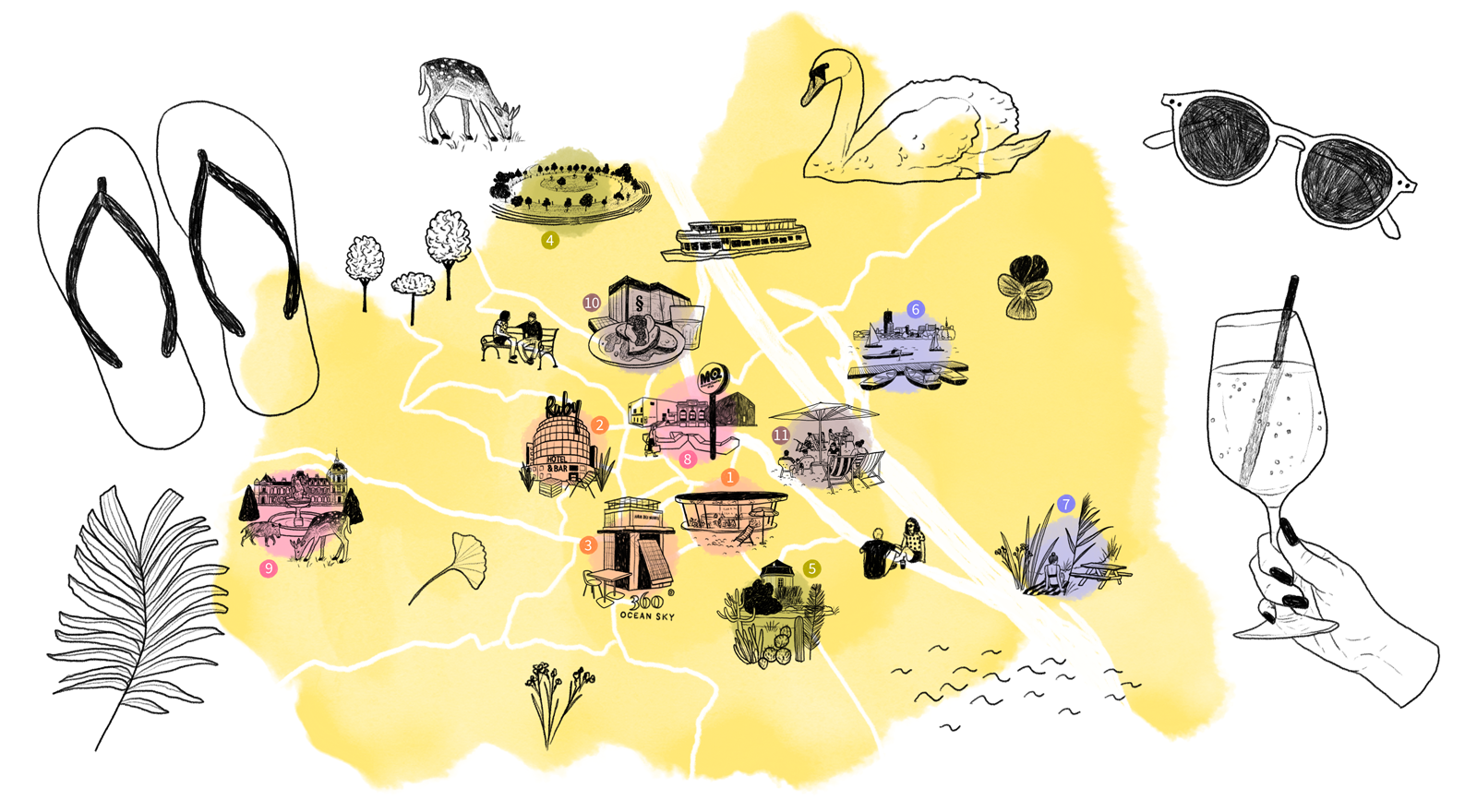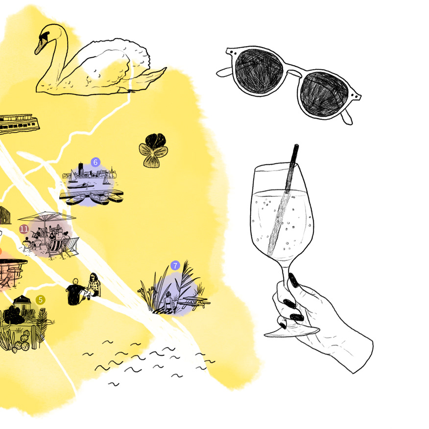 Illustrierte Stadtkarte zum Thema Sonnenplätze in Wien für das Ressort Erholung auf der Website der Österreich Werbung (www.austria.info)