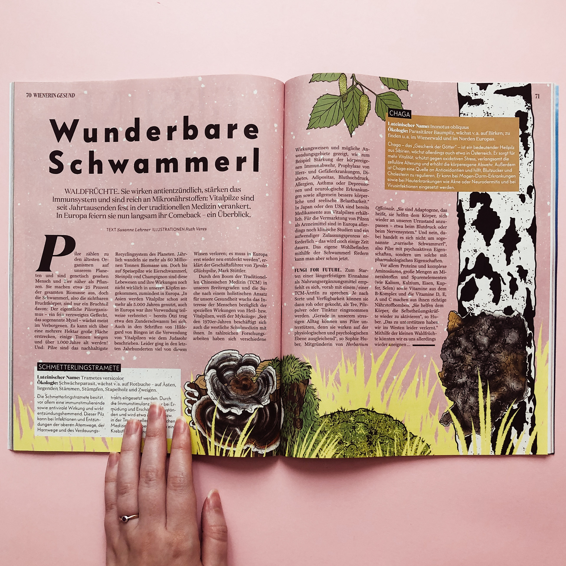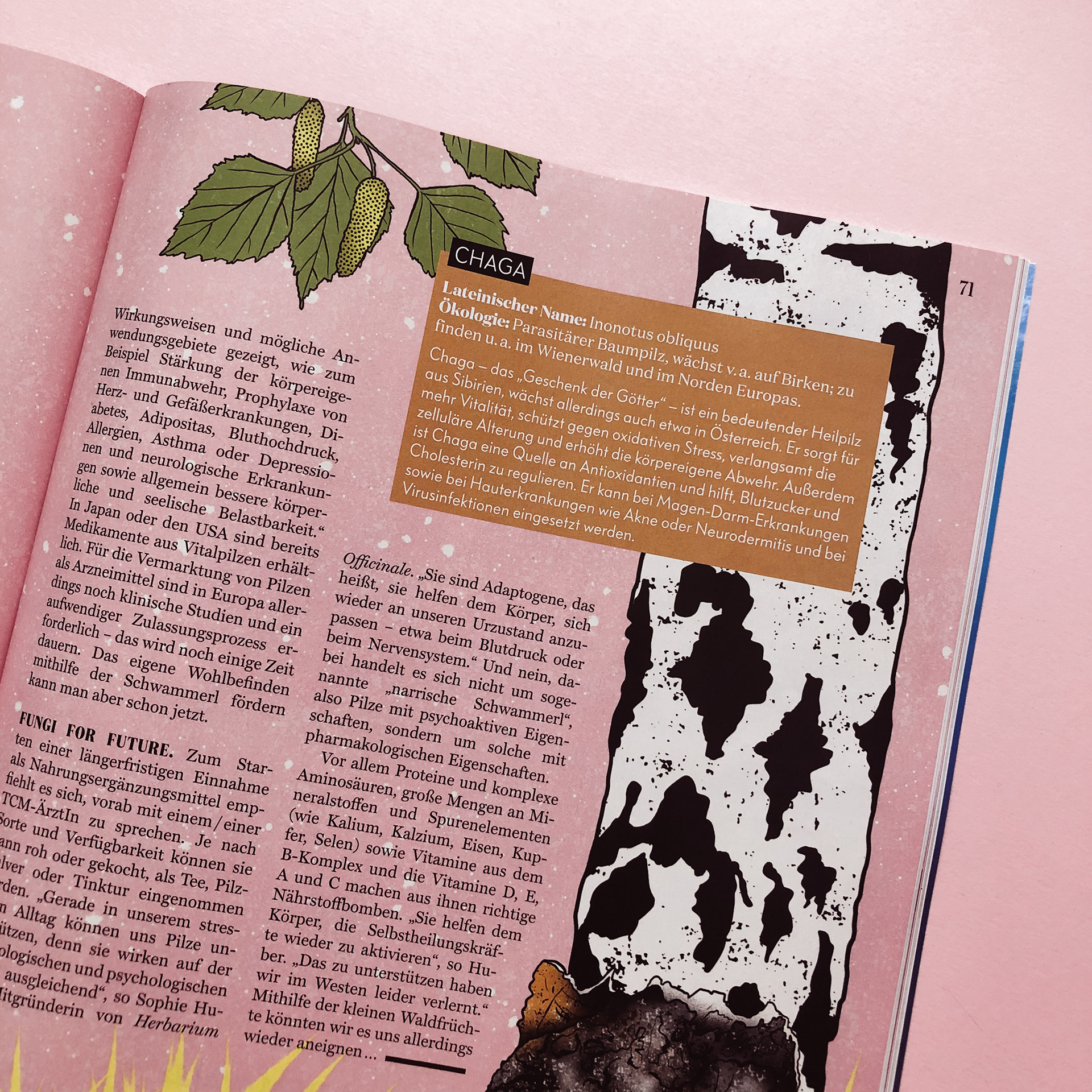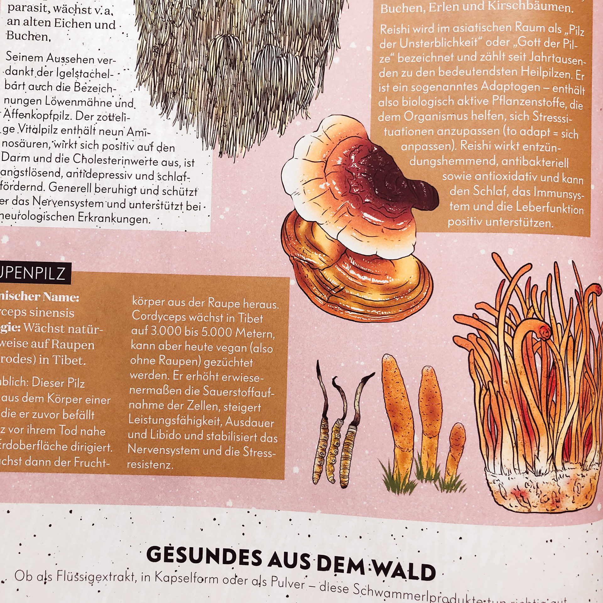 Vitalpilze / AD: Natalie Maierhofer & Hannah Sobol / Text: Susanne Lehrner / Illustration: Ruth Veres